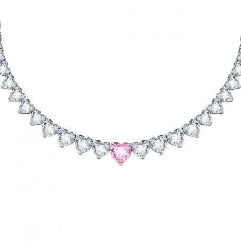 Collana da Donna, collezione Diamond Heart Chiara Ferragni. Collana con zirconi bianchi taglio cuore e zircone rosa fata taglio cuore centrale